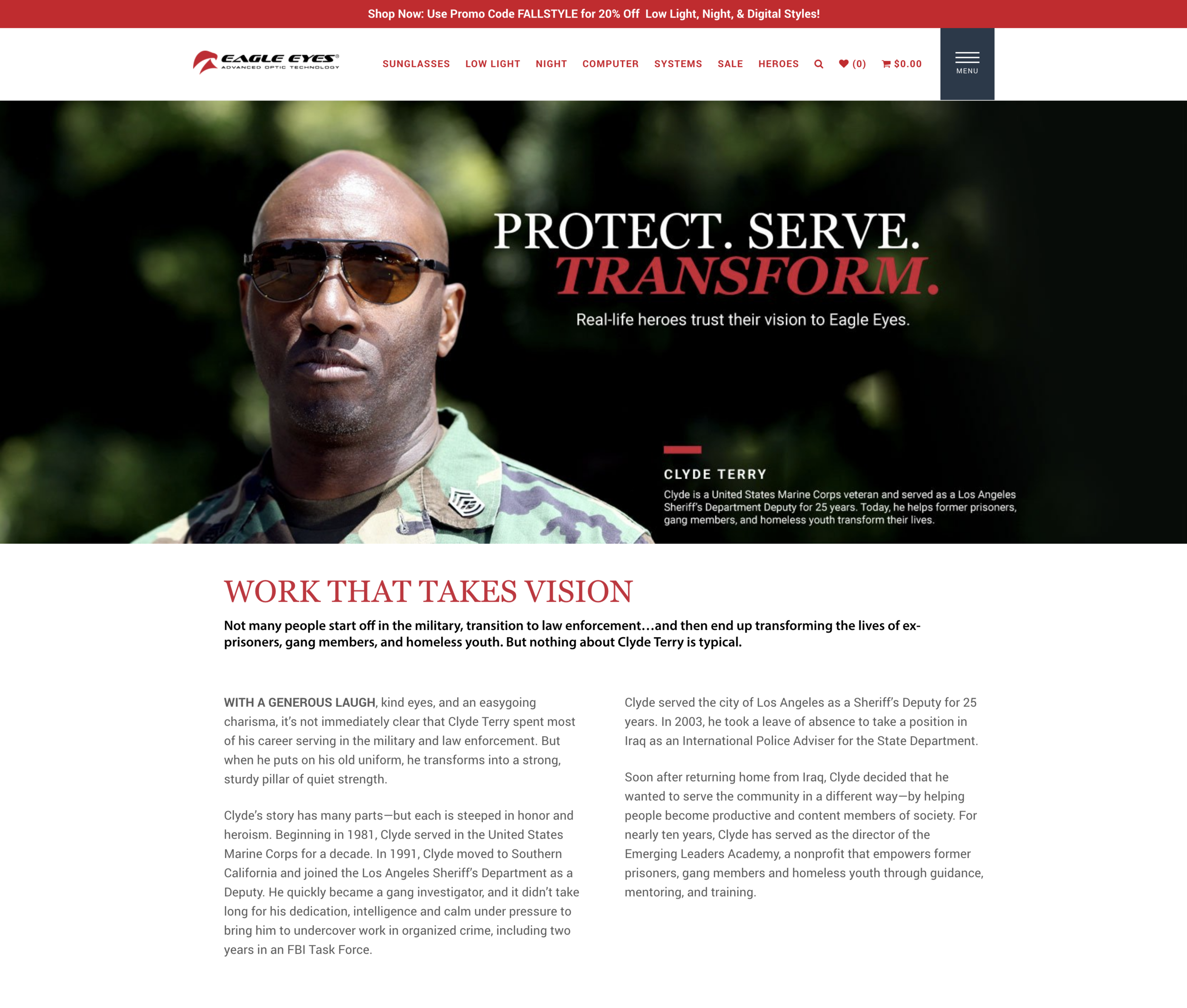 Eagle Eyes is a small, California-based e-commerce company that offers something big: sunglasses made with NASA optic technology for superior protection and performance. We crafted email campaigns, blog posts, and a “heroes” campaign to drive sales, raise brand awareness, and create loyalty among customers.